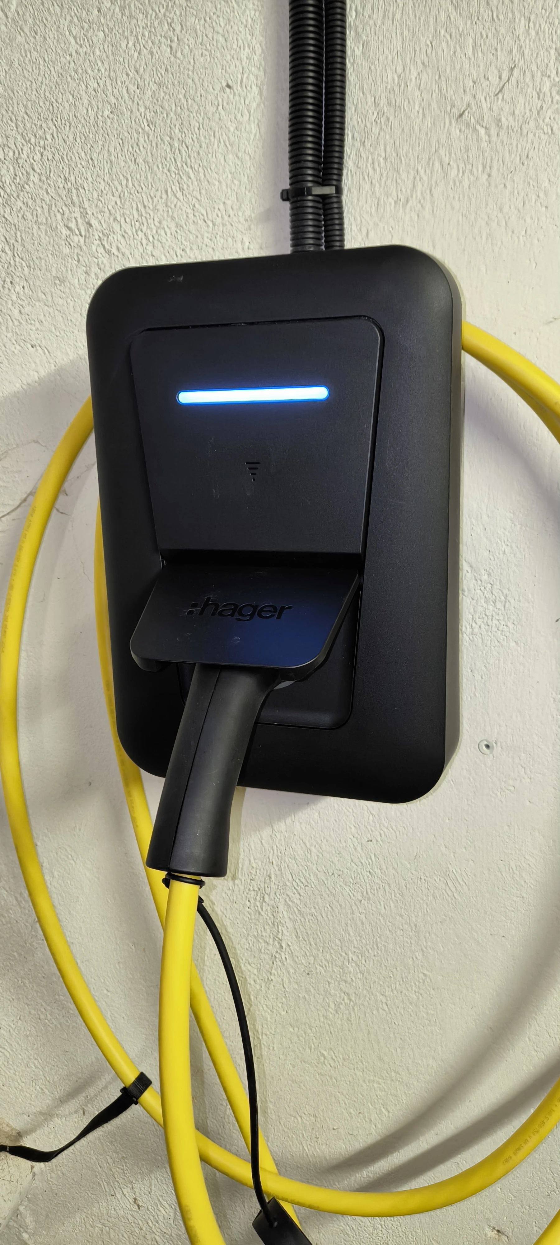 Installation d'une borne de recharge pour véhicule électrique HAGER WITTY ONE 7KW à Sedan dans les Ardennes.
