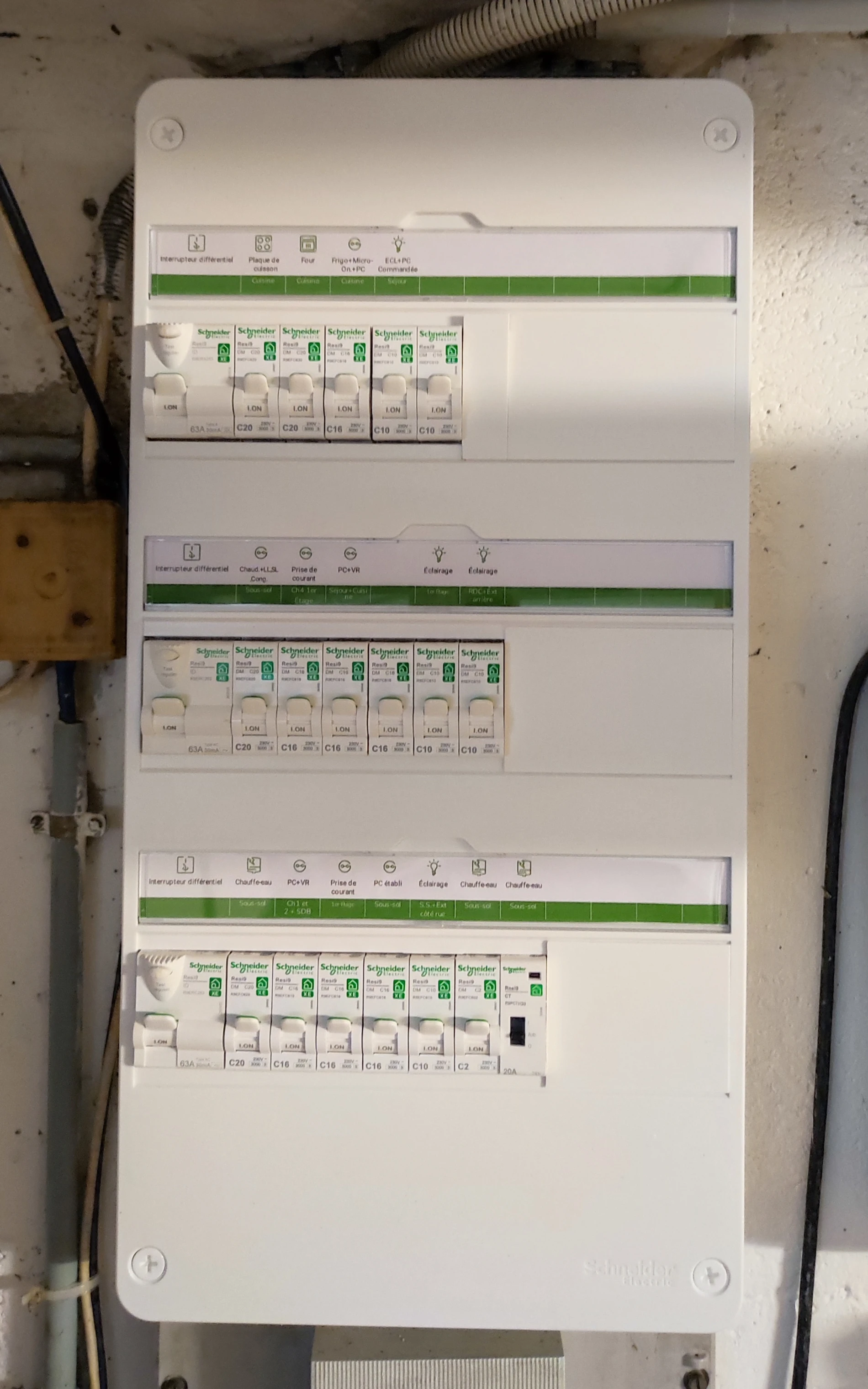 Remplacement d’un ancien tableau électrique par un tableau Schneider 3 rangées.